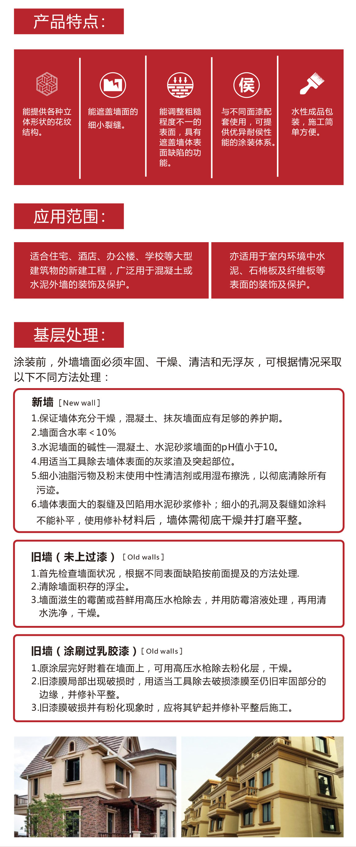特殊改性的丙烯酸類(lèi)中層料,能為墻體提供立體裝飾效果。