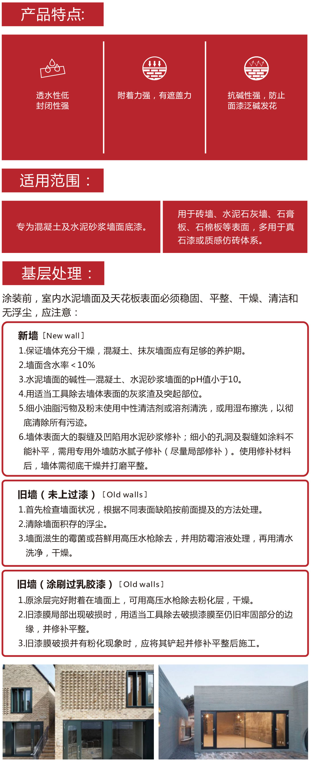 改性丙烯酸類(lèi)底漆,能有效地保護乳膠漆面漆免受墻體內部的化學(xué)物質(zhì)的侵襲。