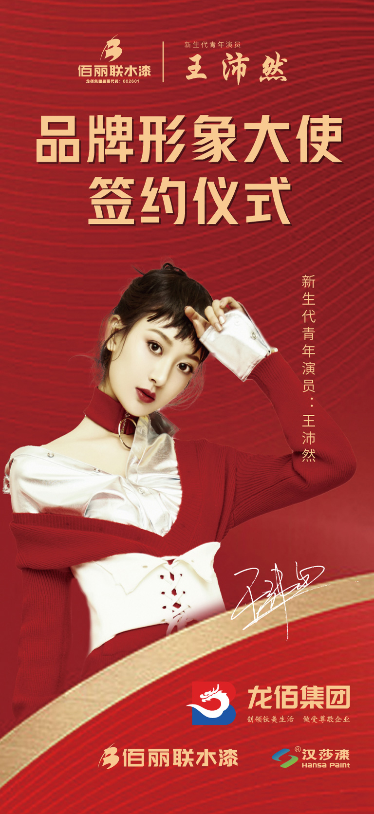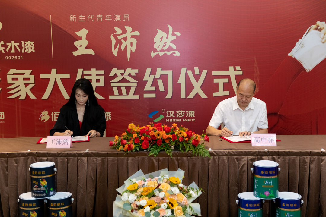 隨后,公司總經(jīng)理高總與王沛然簽署代言協(xié)議,新生代青年演員王沛然正式成為綠色環(huán)保涂料佰麗聯(lián)水漆的品牌形象大使